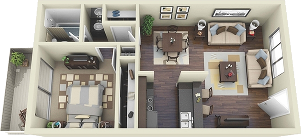 The Veranda - 1 Bedroom / 1 Bath - 552 Sq. Ft.*